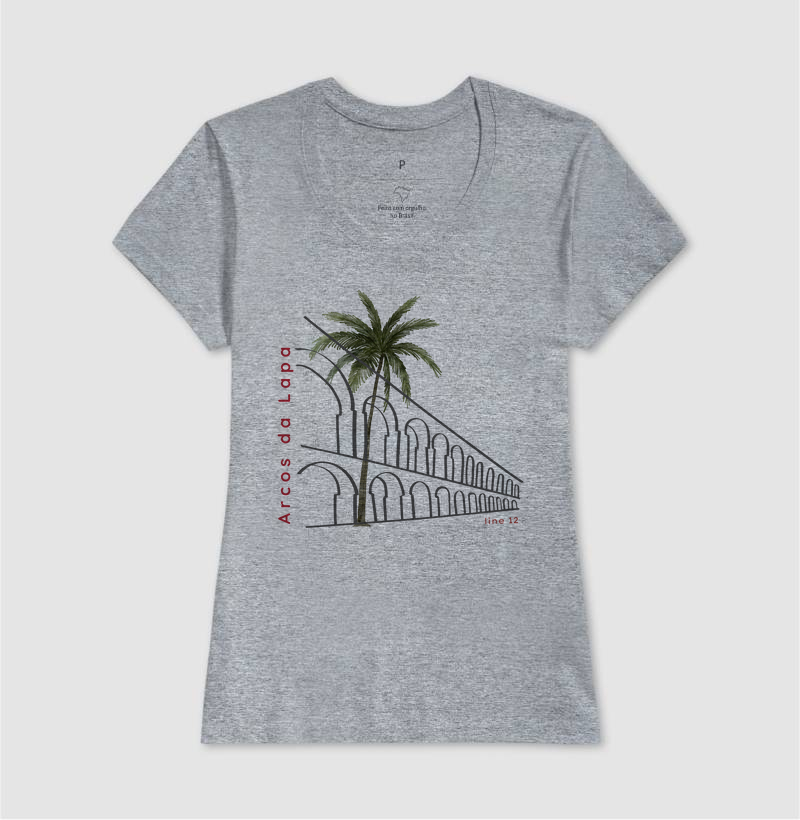 Camiseta em 100% algodão - 30.1 com estampa exclusiva da nossa marca, inspirada nos Arcos da Lapa. Nossas camisetas são de excelência em algodão brasileiro, ideais para todos os climas. Todas as cores são 100% algodão; exceto cinzas: 88% algodão e 12% poliéster.