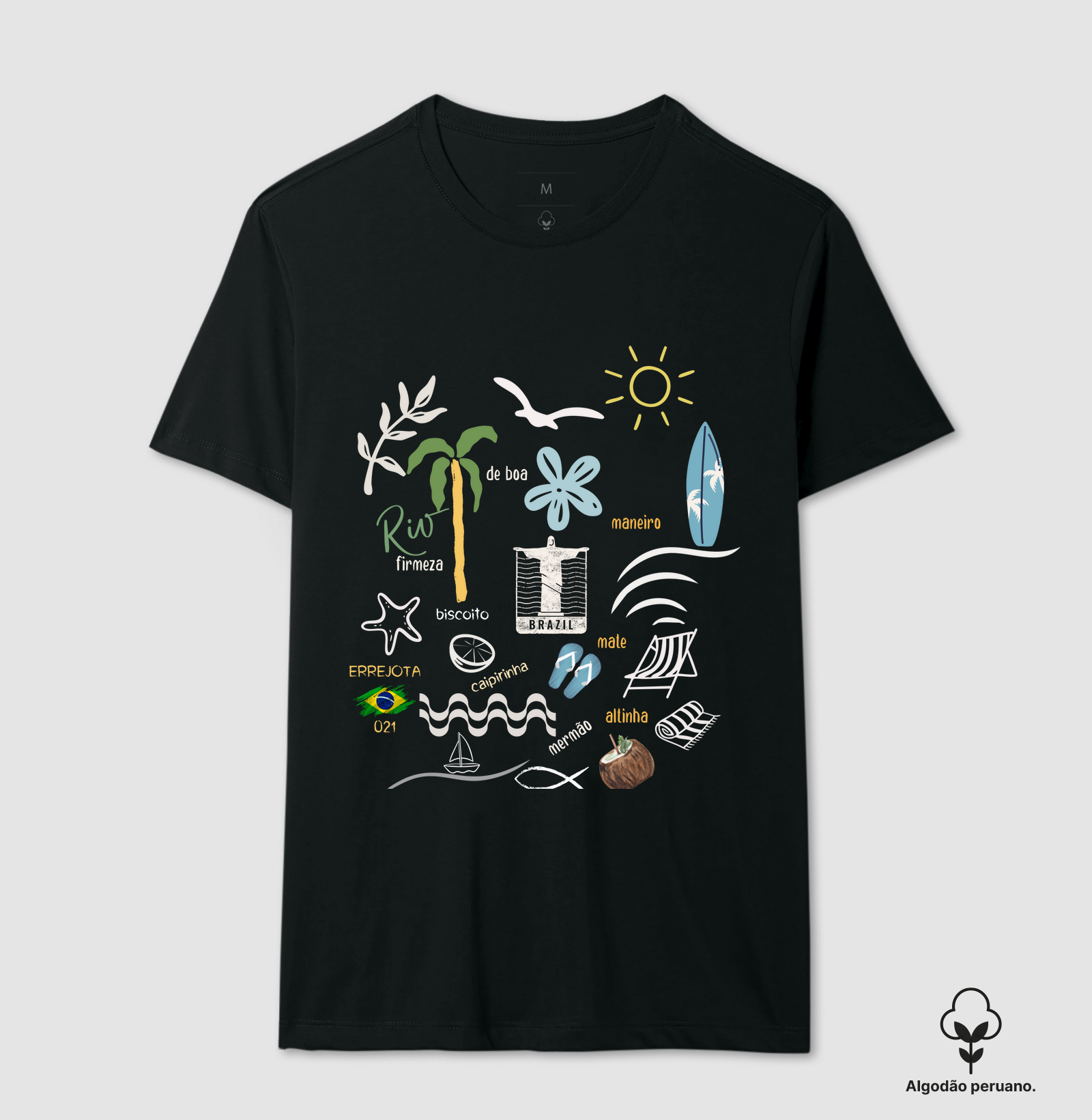 O Rio cabe inteiro numa parede e também nessa camiseta. A estampa “Mural do Rio” celebra a arte urbana, a energia das ruas e a alma vibrante da cidade maravilhosa. Confeccionada em 100% algodão, ela oferece conforto o dia todo, com toque macio e caimento leve. Ideal pra quem curte expressar personalidade sem dizer uma palavra, ela vai bem com looks despojados e urbanos, do Aterro ao Centro, da Lapa à Zona Norte. Se o Rio é arte a céu aberto, essa camiseta é o quadro perfeito.